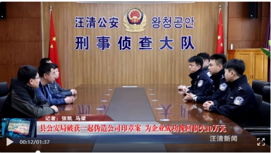 汪清县公安局破获一起伪造公司印章案为企业成功挽回损失10万元